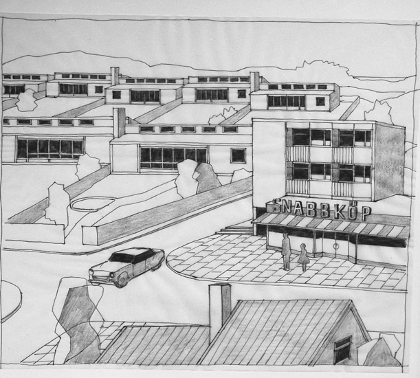 Text till bilden: "Lysekil. Ritning. För Stadsarkitekten. 1955.09"