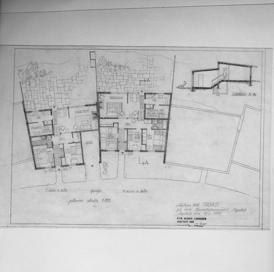 Text till bilden: "Lysekil. Ritning. För Stadsarkitekten. 1955.09"