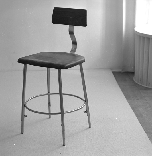 Text till bilden: "Stol. Lysekils Bleck o Plåtslageri. Ateljefoto. 1956"