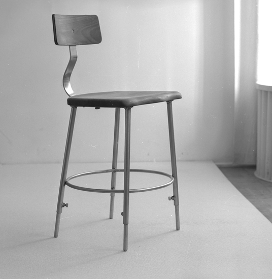 Titel: Text till bilden: "Stol. Lysekils Bleck o Plåtslageri. Ateljefoto. 1956"