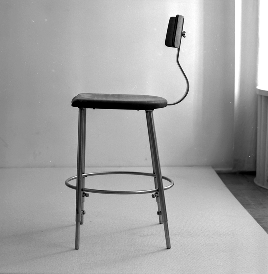 Text till bilden: "Stol. Lysekils Bleck o Plåtslageri. Ateljefoto. 1956"