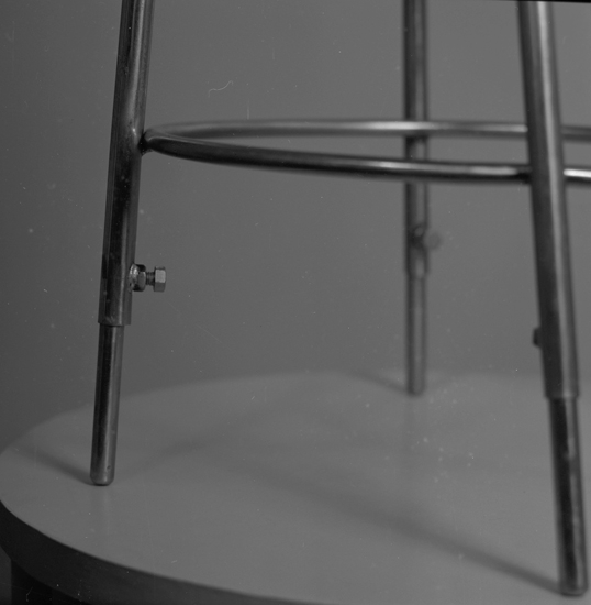 Titel: Text till bilden: "Stol. Lysekils Bleck o Plåtslageri. Ateljefoto. 1956"