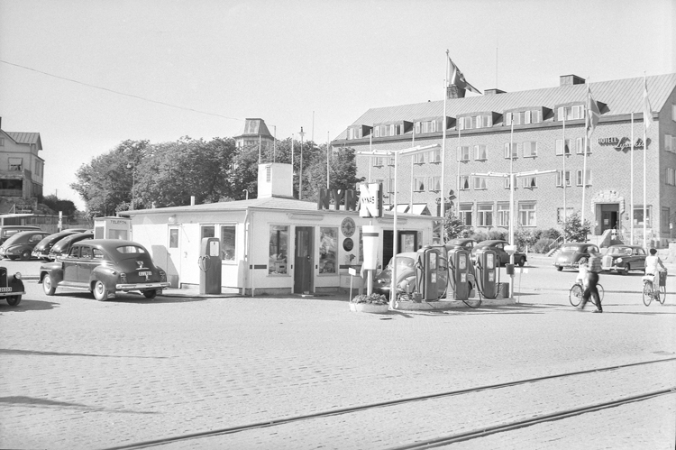 Text till bilden: "Bensinstationen Nynäs. Fotografering av sju bensinstationer i Lysekil. Beställare Svenska Gulf Oli Co. Södergatan 18 Uddevalla.