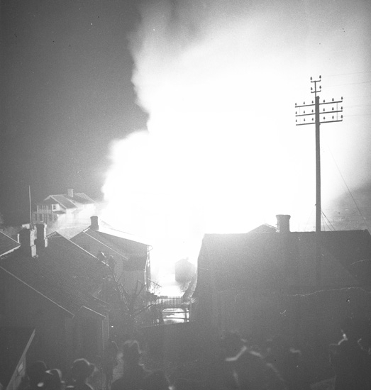 Text till bilden: "Lysekil. Branden vid Turisthotellet. 1939.03.01".