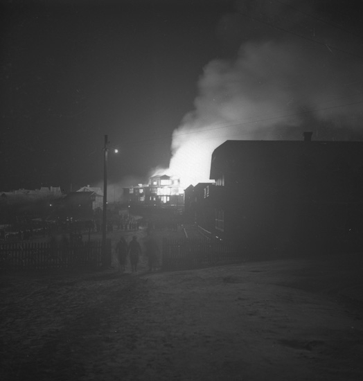 Text till bilden: "Lysekil. Branden vid Turisthotellet. 1939.03.01".