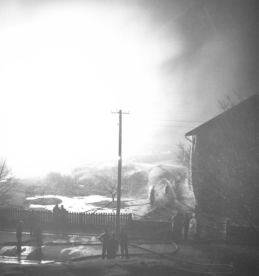 Text till bilden: "Lysekil. Branden vid Turisthotellet. 1939.03.01".