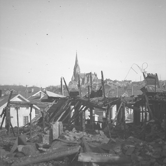 Text till bilden: "Lysekil. Branden vid Turisthotellet. 1939.03.01".