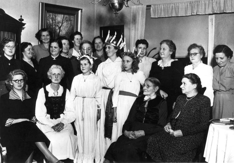 Luciafirande hemma hos Gulli Kleberg, Strömstadsvägen, Uddevalla, på 1940-talet