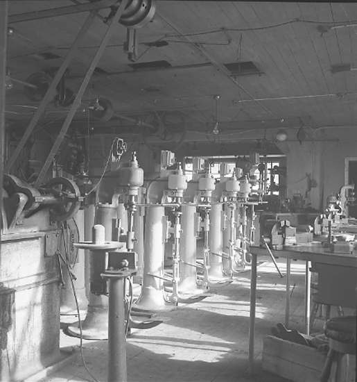 Text till bilden: "Bergmans Mekaniska verkstad. Falsmaskiner i smedjan. 1945.09.30".
