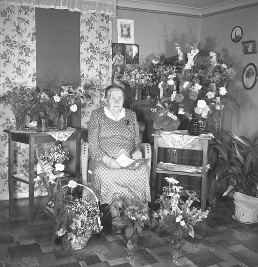 Text till bilden: "Amanda Jonsson, Stubben 3. 80 år. 1946.07.17".