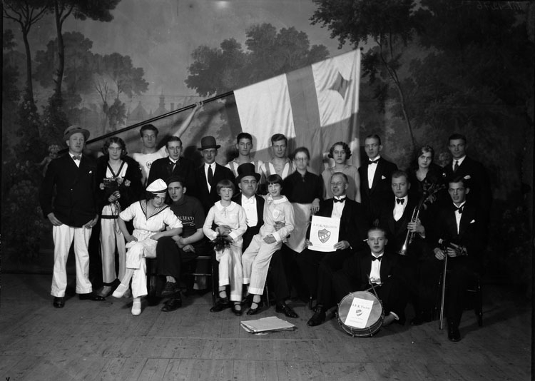 Uppgift enligt fotografen: "Uddevalla. Teatern. Revy. Idrottsför. Kamraterna."