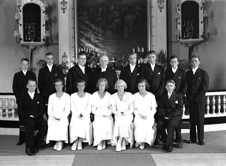 Uppgift enligt fotografen: "Uddevalla. Konfirmander. Pastor Agner."