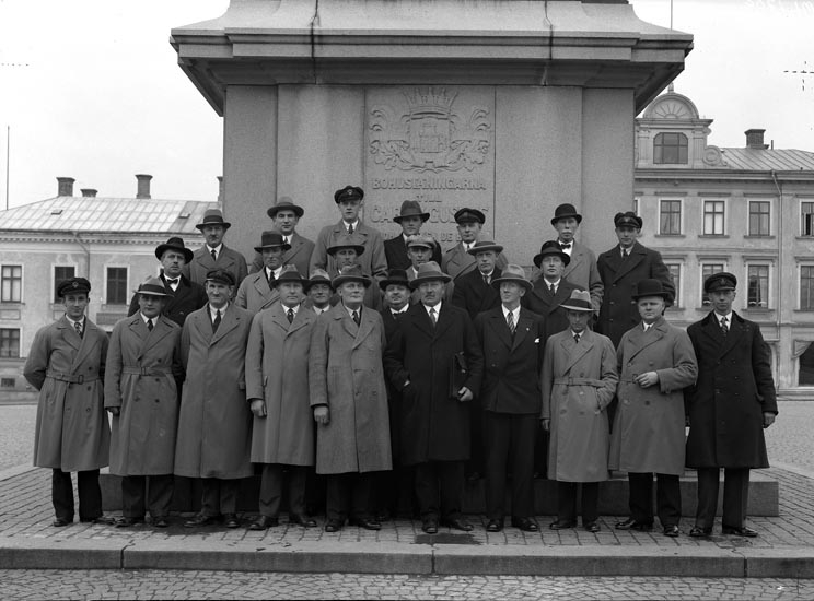 Uppgift enligt fotografen: "Uddevalla. Grupp på torget. Herr Hermansson."