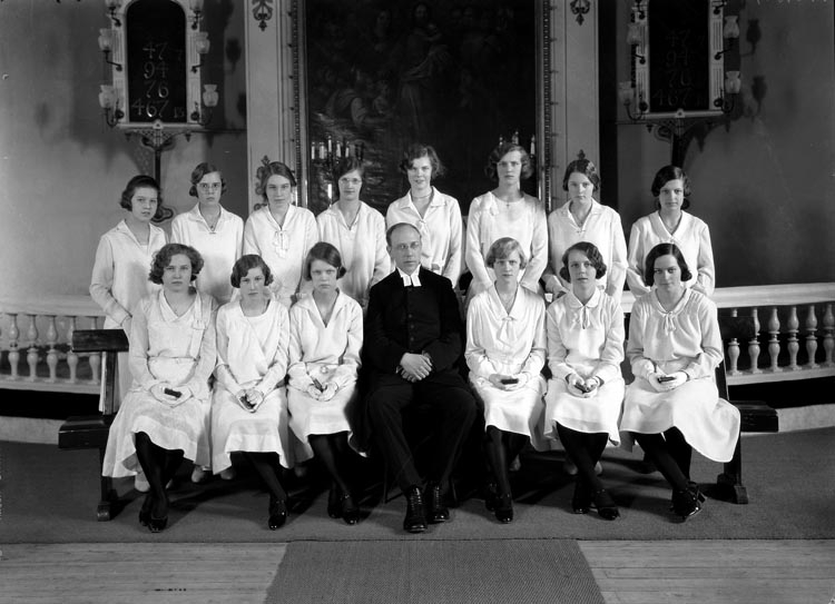 Uppgift enligt fotografen: "Uddevalla. Konfirmander. Pastor Cerenius."