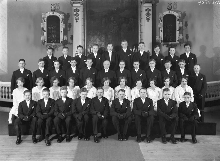 Uppgift enligt fotografen: "Uddevalla. Konfirmander. Pastor Agner."