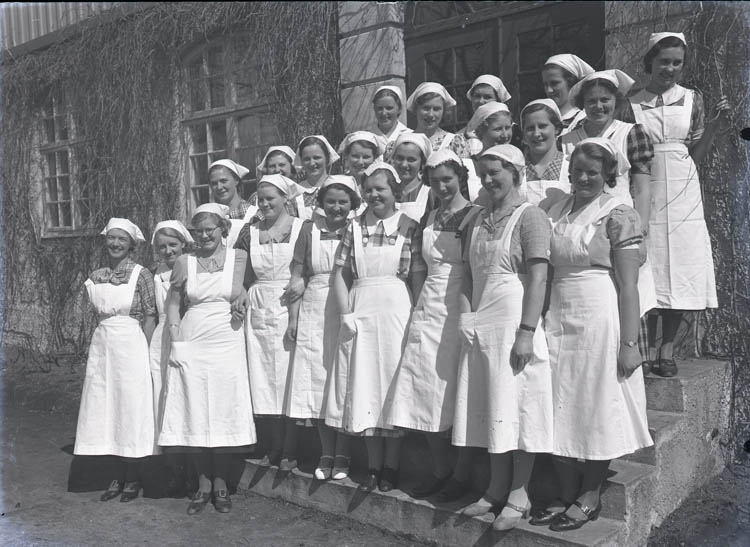 Text till bilden:"Flickor som går husmodersutbildning. Västkustens Ungdomsskola (VU)1941-12-26".