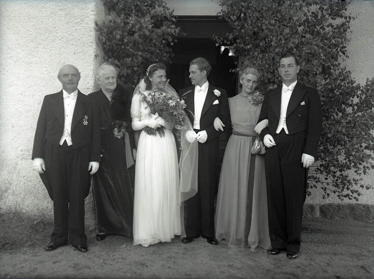 Text till bilden:"Brudpar med vittne. Häller. Ulvesund".