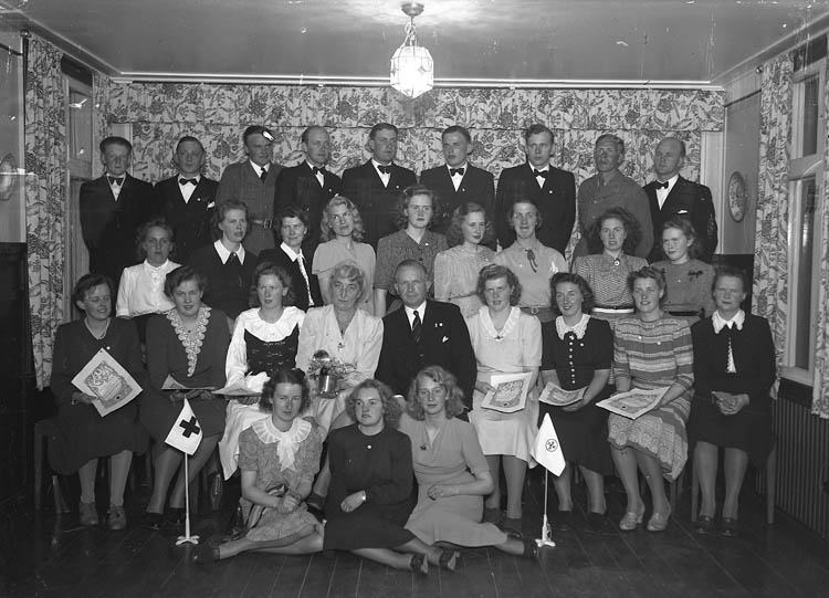 Text till bilden:"Rödakorsets flagga. Några har fått diplom. Hemgården".