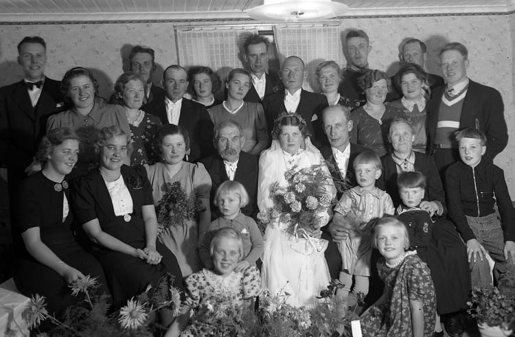 Text till bilden:"Brudparet Bengt Johansson med gäster".