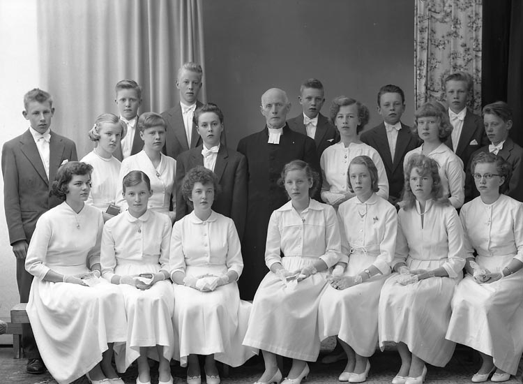 Enligt fotografens journal nr 8 1951-1957: "Konfirmander, Kyrkoh. Johnson, Spekeröd".