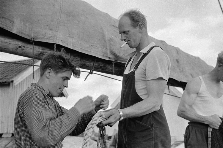 Förberedelser för islandsfiske ombord på LL 1054 KNAPE