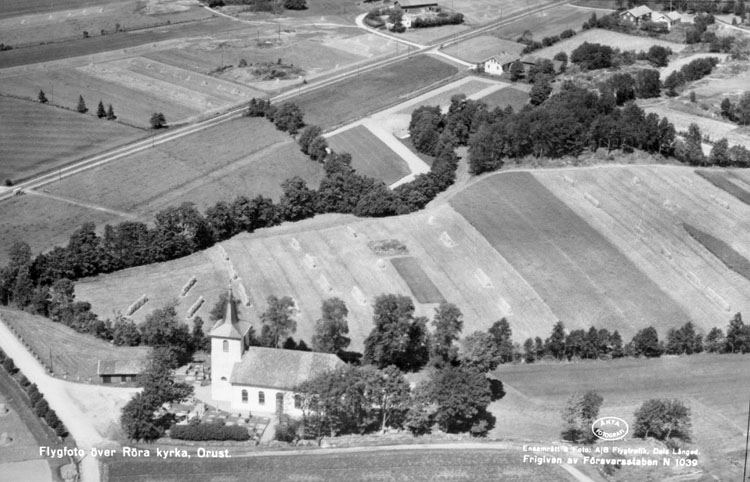 Enligt text på fotot: "Flygfoto över Röra kyrka, Orust".