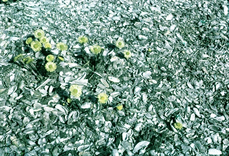 Hästhov som växer i skalgrusbank