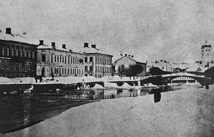 Enligt notering: "U-a Valvbron o N. Hamngatan, fr väster omkring 1880. Stenbron revs 1884".