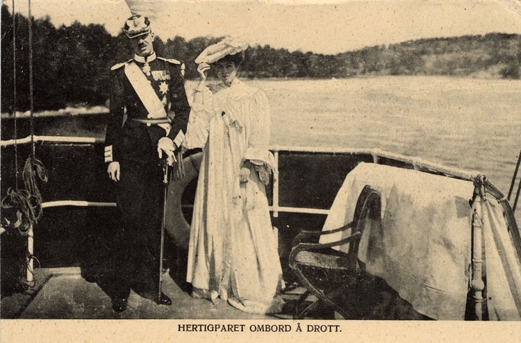 Brevkort. "HERTIGPARET OMBORD PÅ DROTT"