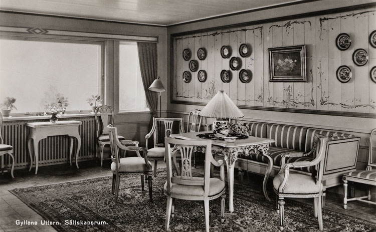 Tryckt text på bilden: "Gyllene Uttern. Sällskapsrum".