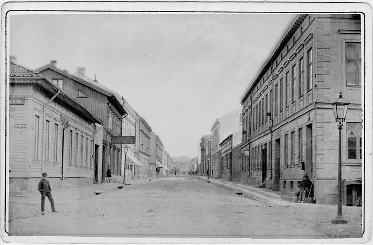 Enligt text skrivet på kopian: "Kungsgatan fr. Hallmans, Uddevalla omkr.1880