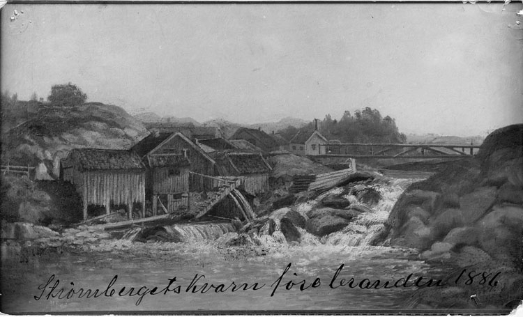 Enligt text skrivet på kopian: "Strömbergets Kvarn före branden 1886