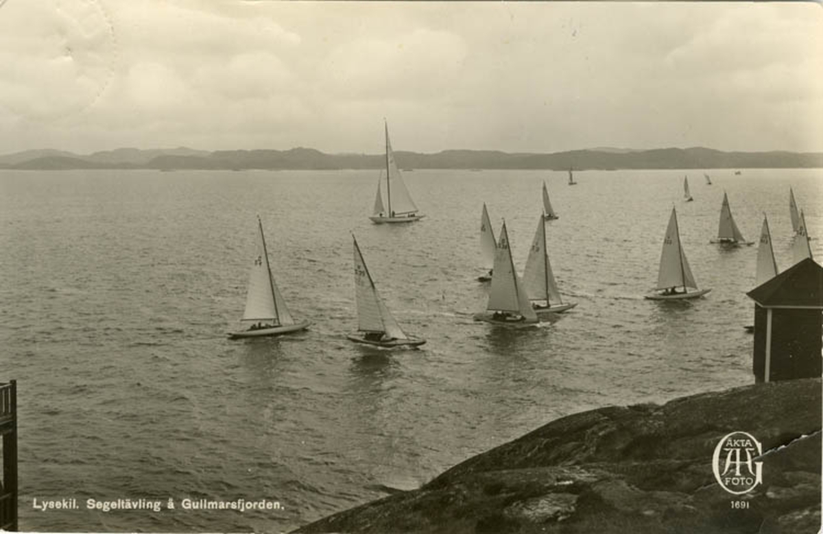 Text på kortet: "Lysekil. Segeltävling å Gullmarsfjorden".
