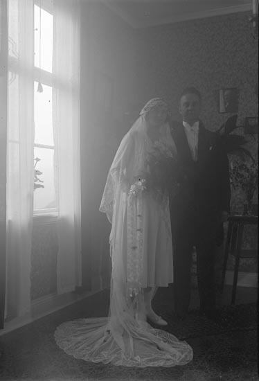 Enligt fotografens journal nr 6 1930-1943: "Dahl, Brudparet Folkskolan Tjäderöd".