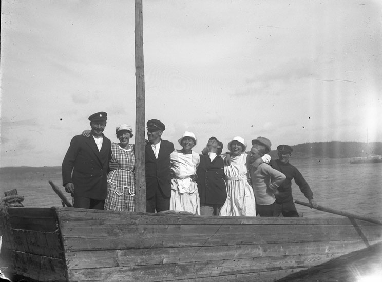 Enl. text i blå bok: "Personer på en pråm."