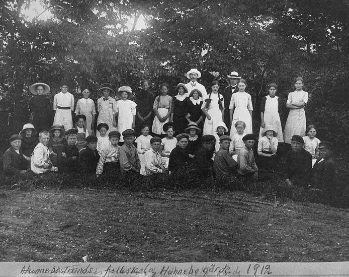 Text som medföljer kortet: "Hunnebostrands folkskola, Hunnebogärde 1912".