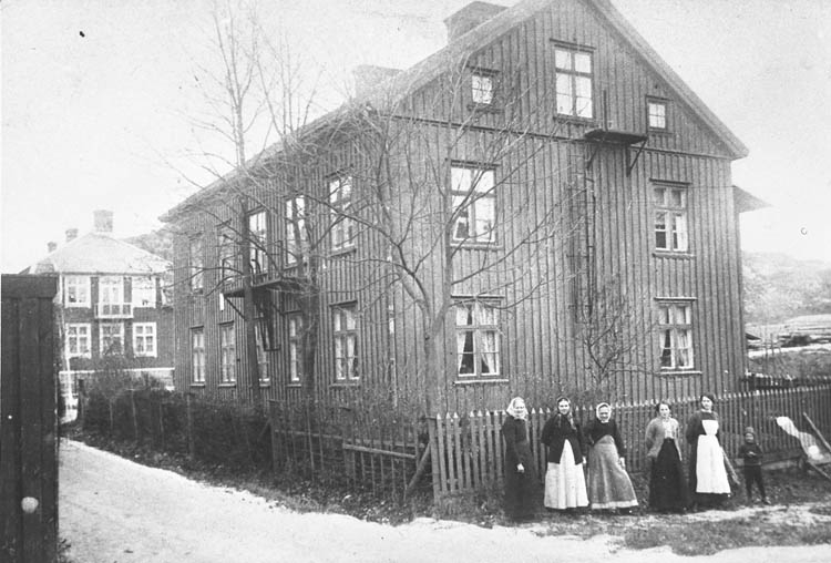Text till kortet: "Lyckhem med Ängabo bakom. Även detta med lägenheter för stickans anställda. Gatan heter idag (1992) Klintvägen t.d. Samnerödsvägen"