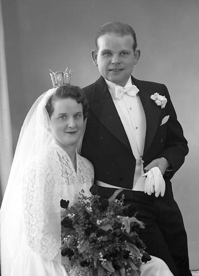 Enligt fotografens journal nr 9 1958-: "Hagström, Brudp. St. Järnväg Stenungsund".