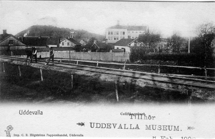 Tryckt text på vykortets framsida: "Uddevalla. Cellfängelset."