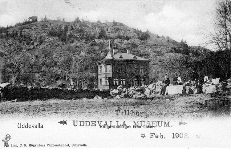 Tryckt text på vykortets framsida: "Uddevalla Kålgårdsberget från öster."