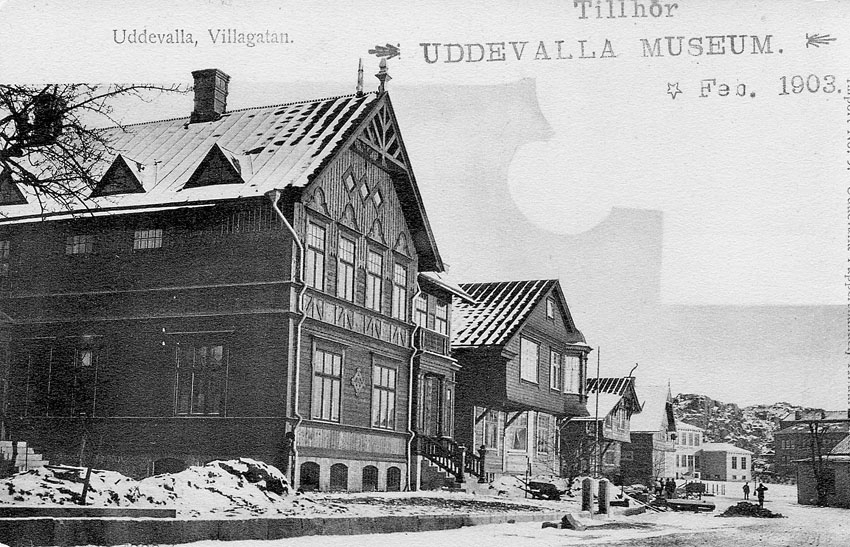 Tryckt text på vykortets framsida: "Uddevalla. Villagatan".