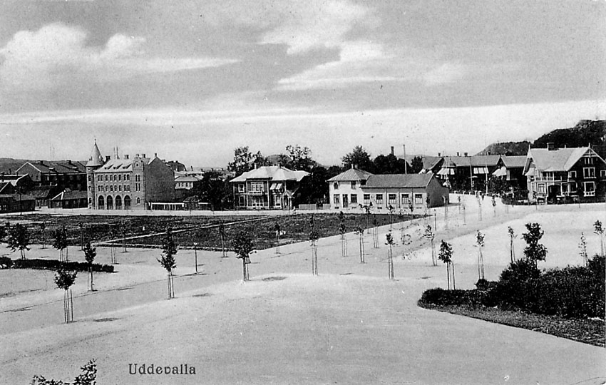 Tryckt text på vykortets framsida: "Uddevalla".