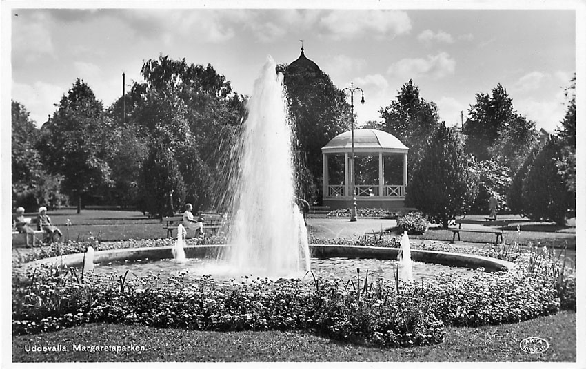 Tryckt text på vykortets framsida: "Uddevalla. Margaretaparken".