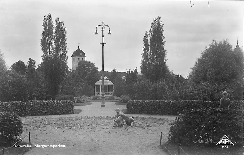 Tryckt text på vykortets framsida: "Uddevalla. Margaretaparken".