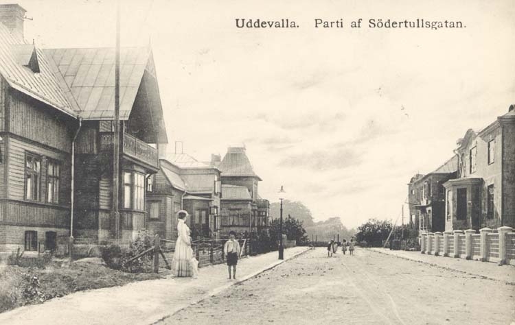 Tryckt text på kortet: "Uddevalla. Parti af Södertullsgatan."