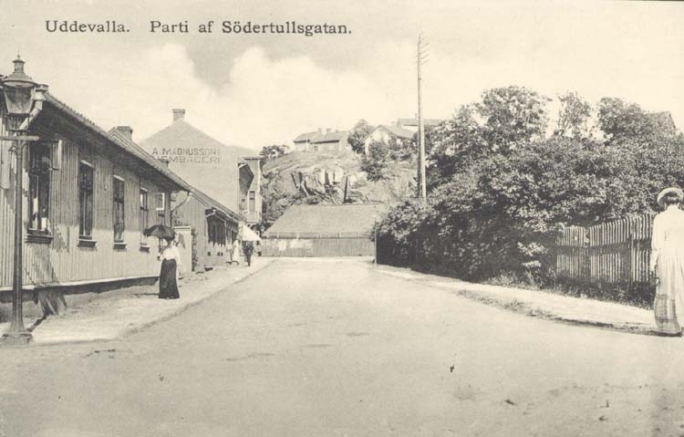 Tryckt text på kortet: "Uddevalla. Parti af Södertullsgatan."