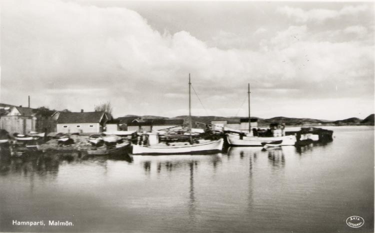Tryckt text på kortet: "Hamnparti. Malmön".