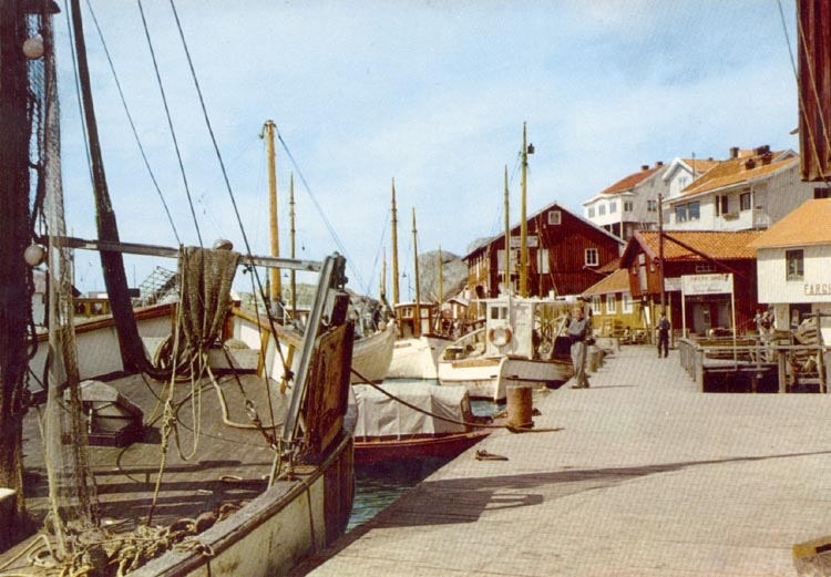 Tryckt text på kortet: "Smögen. Hamnparti". "9 OKT. 1959".