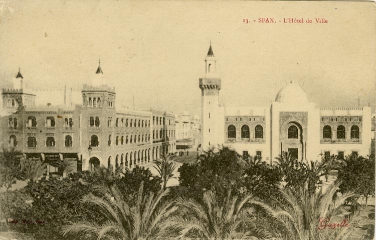 Notering på kortet: Sfax, L Hotel de Ville.
