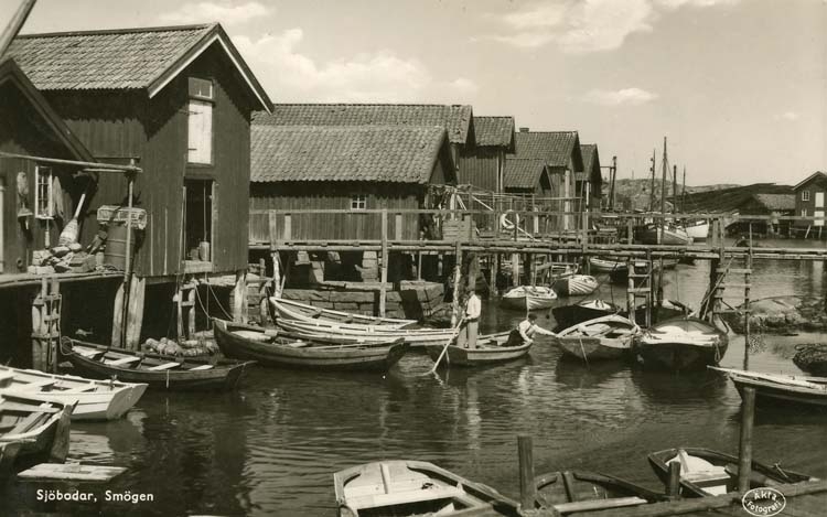 Text på kortets baksida: Smögen. Härliga salta bad, fiske och soliga klippor.